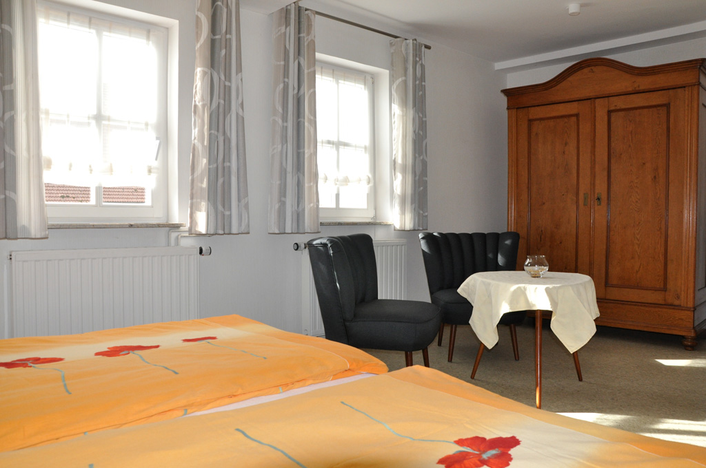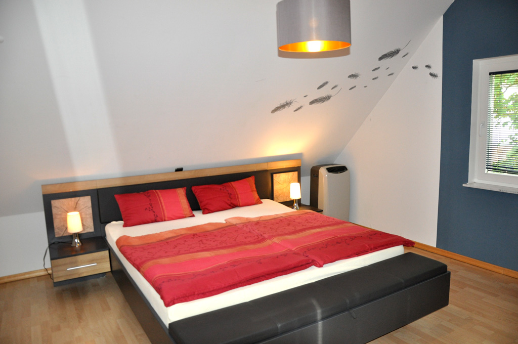 Unsere modern eingerichtete Ferienwohnung mit Terrasse verfügt über 1 Mehrbettzimmer für bis zu 3 Personen.